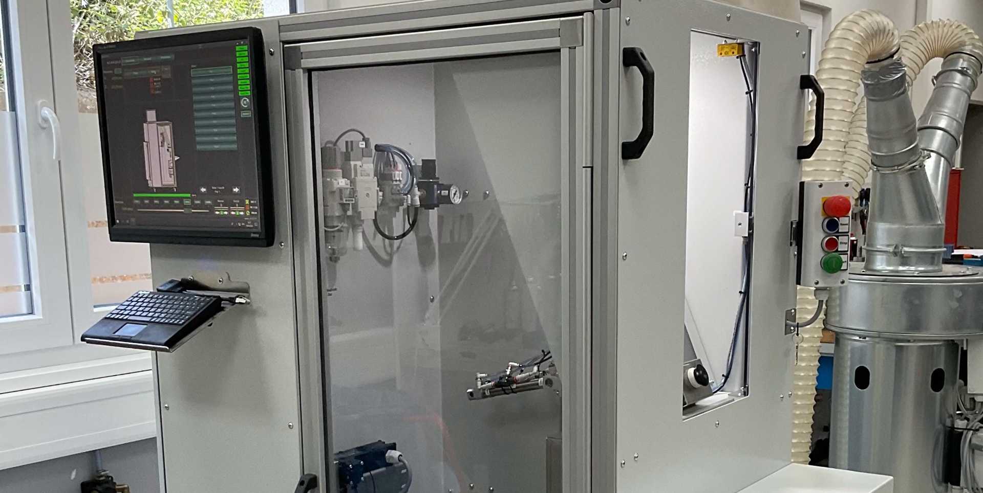 Klingele Technik entwickelte eine kompakte Bürstenbearbeitungsanlage, bei der die Bürste manuell in eine Aufnahme eingelegt wird. Nach dem Start schließt sich das Schutzfenster automatisch und verriegelt die Maschine während des gesamten Bearbeitungsprozesses.