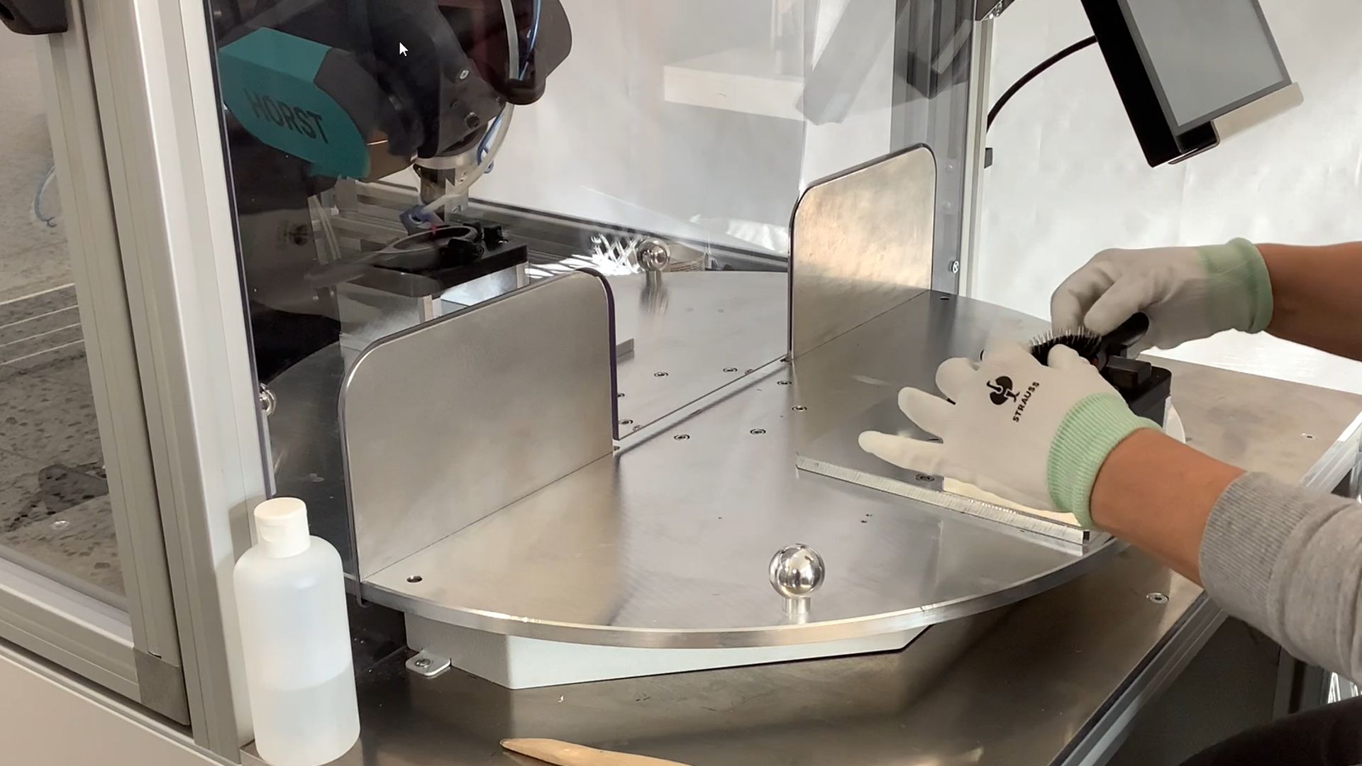 Der gesamte Prozess wird über ein integriertes Steuerungssystem kontrolliert und überwacht. Bewegungsabläufe, Dosiermenge und Positionierung sind exakt parametrierbar und jederzeit anpassbar.